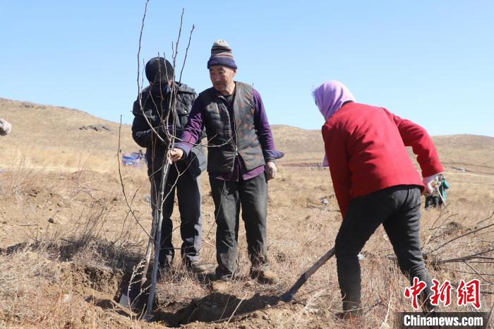 挥锹挖坑、铲土压苗……太阳刚刚升起,突泉县学田乡利民村的80多名村民就在村外的山坡上忙了乎起来。