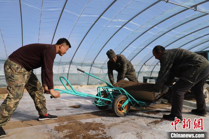 图为村民周金玉(左一)忙着在合作社里育甜菜苗。曾令刚摄