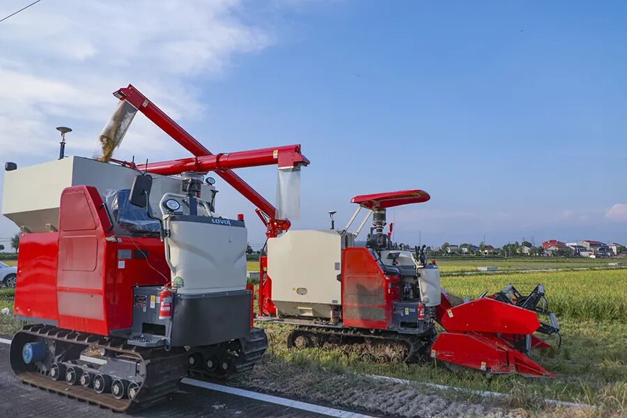 图为湖南长沙市望城区高塘岭街道新阳村全能农机专业合作社无人农场内,一台无人驾驶的收割机自动把粮食卸到指定运粮车上。该农场是全国首个全程机械化无人农场,这是其首次收割水稻。 来源:湖南省人民政府网站