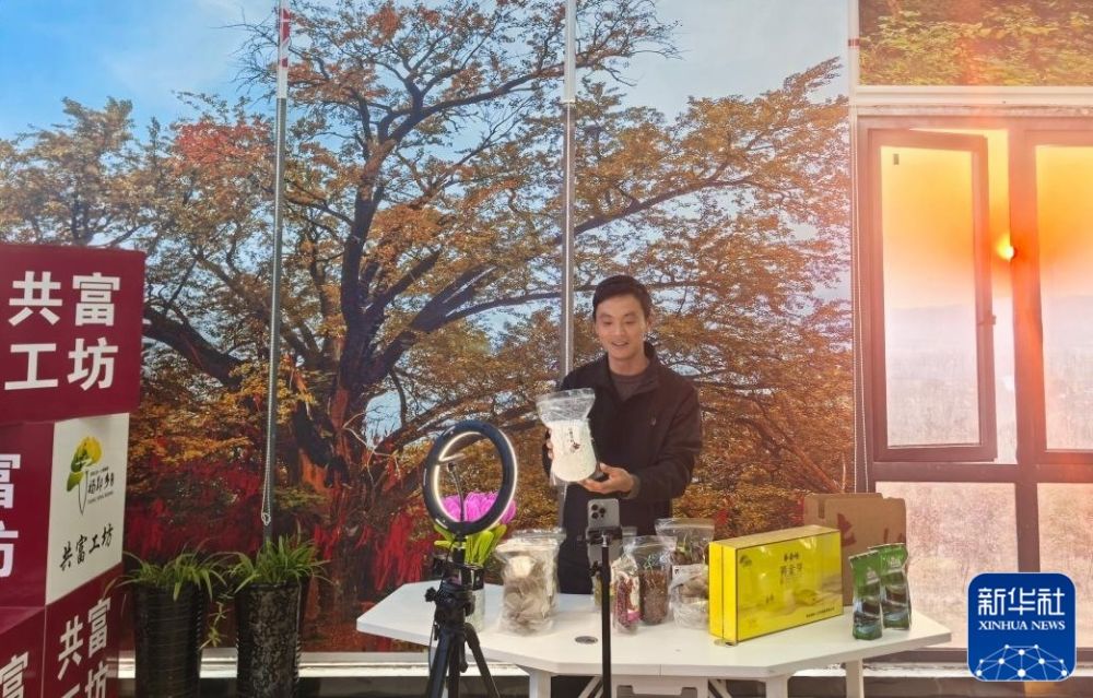 杨郢乡宝山村党总支书记杨涛直播推介农特产品(新华社客户端发 刘姗 摄)